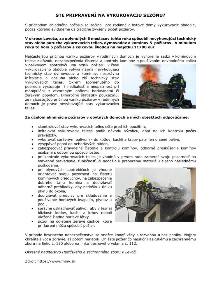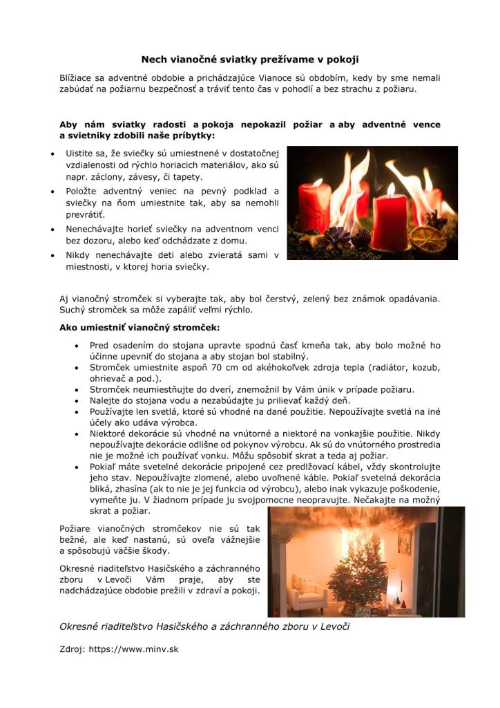 OZNAM: prevencia pred požiarmi počas vykurovacej sezóny a vianočných sviatkov
